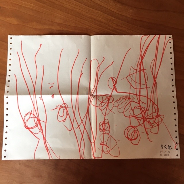 幼稚園で描いて持って帰ってきた初めての絵。