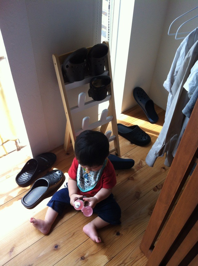 外履き用のサンダルを部屋の中でばら撒いて知らん顔するむちゃる。