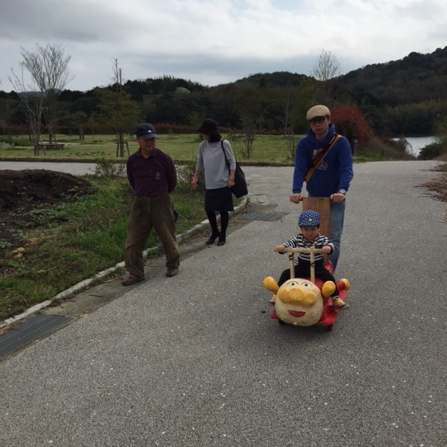 怪しげなアンパンマンに乗ってみんなでお散歩。