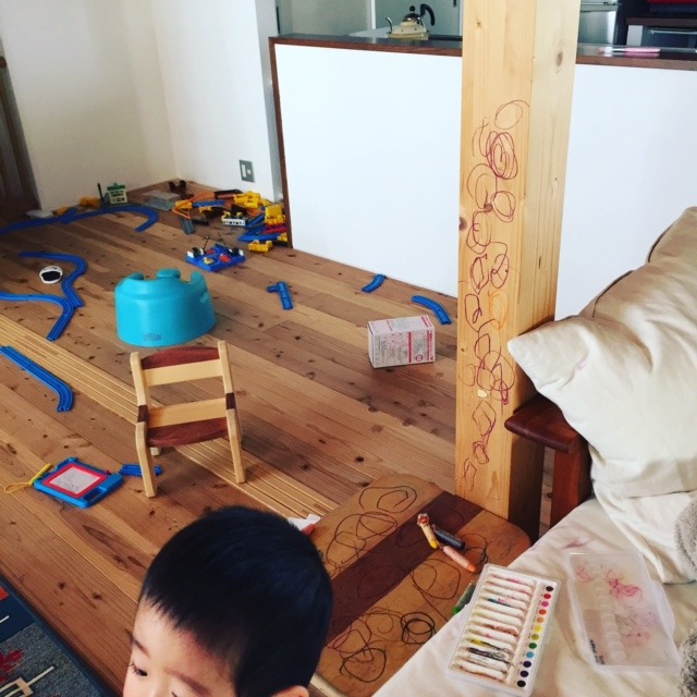 Tue.12.08.2015 全身隠れたつもりw 六太が目を覆って 「ありぇ〜?」って言ったら隠れんぼのスタートの合図 僕は「あれ〜?むっちゃんどこ行った??」 って言いながら 目だけ隠した六太を探しますw (僕の目の前に居ますが(^^:)) しばらく「どこ行った??あれ〜?」って言いながら彼の周りをウロウロした後 「おったー!」って言って抱きしめて くすぐって 二人でキャッキャ言って笑って 周りから見たら バカみたいな事して遊んでます(笑) 良い大人がバカみたい いやほんと バカみたい(笑) こんな事が人生で一番幸せだなんて