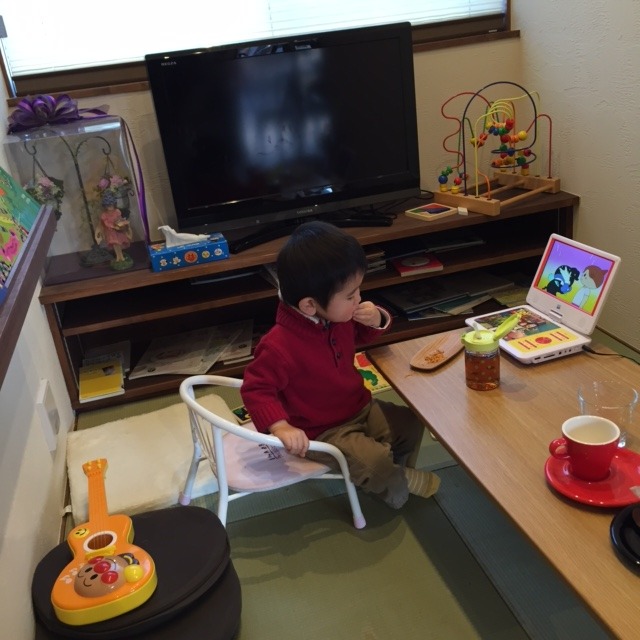 Tue.01.19.2016 佐々木書店にて 人見知り&場所見知りでギャン泣きだった息子。 お店の方々に迷惑をかけ、アンパンマンのDVDまで用意してもらいご機嫌になった息子。 最後はわが家よりもくつろいでました。 どんだけ自己中w 〜まこち〜