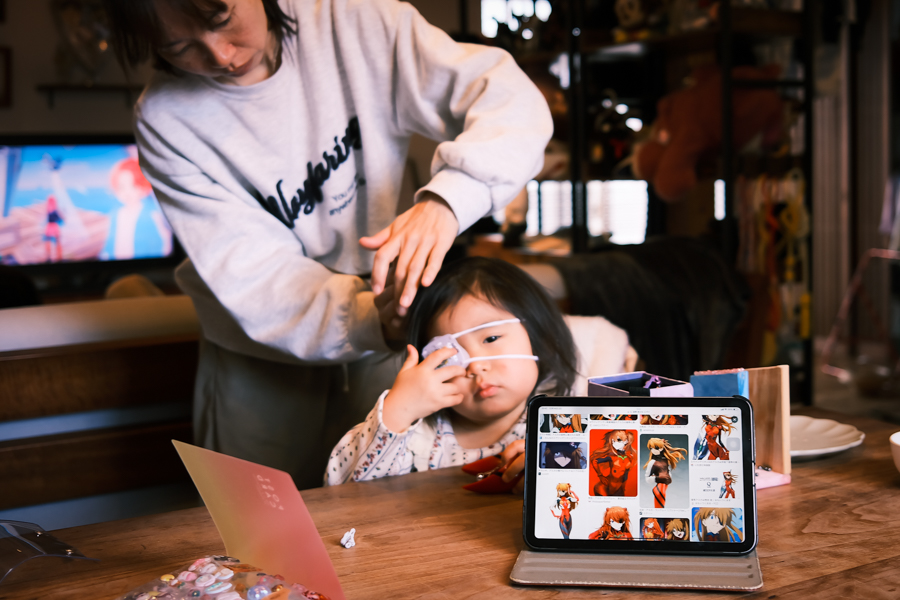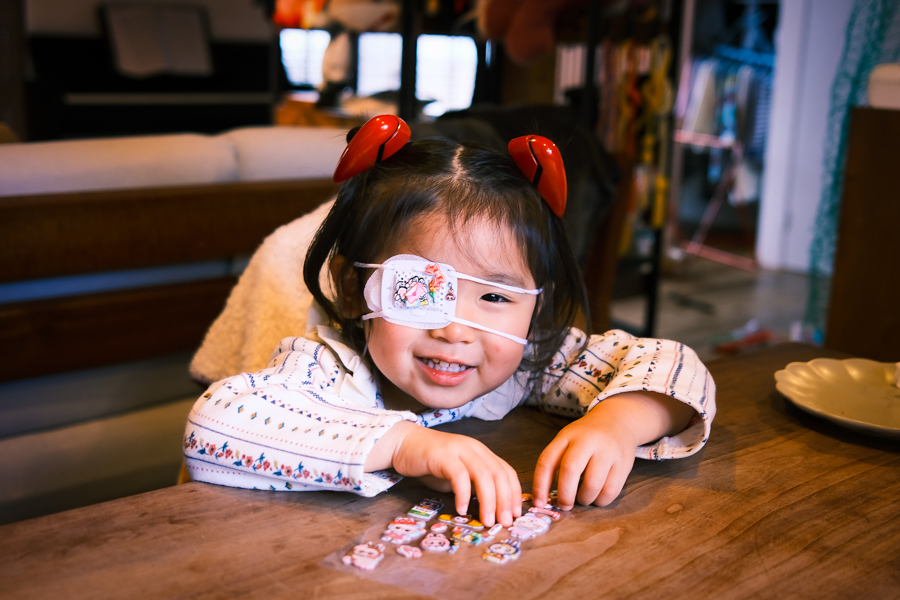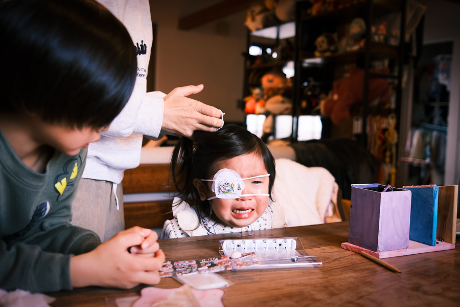 目の矯正で 一日に二時間ほど眼帯をする事になった一花